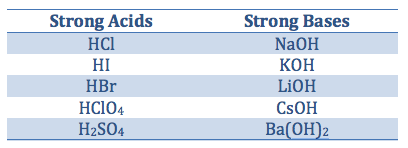 Weak acid: HNO3, H3PO4, H2CO3, CH3COOH (acetic acid)