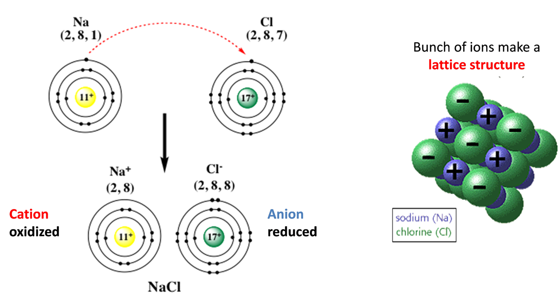 - Metals lose electrons to form positive ions (cations); non-metals gain electrons to form negative ions (anions).