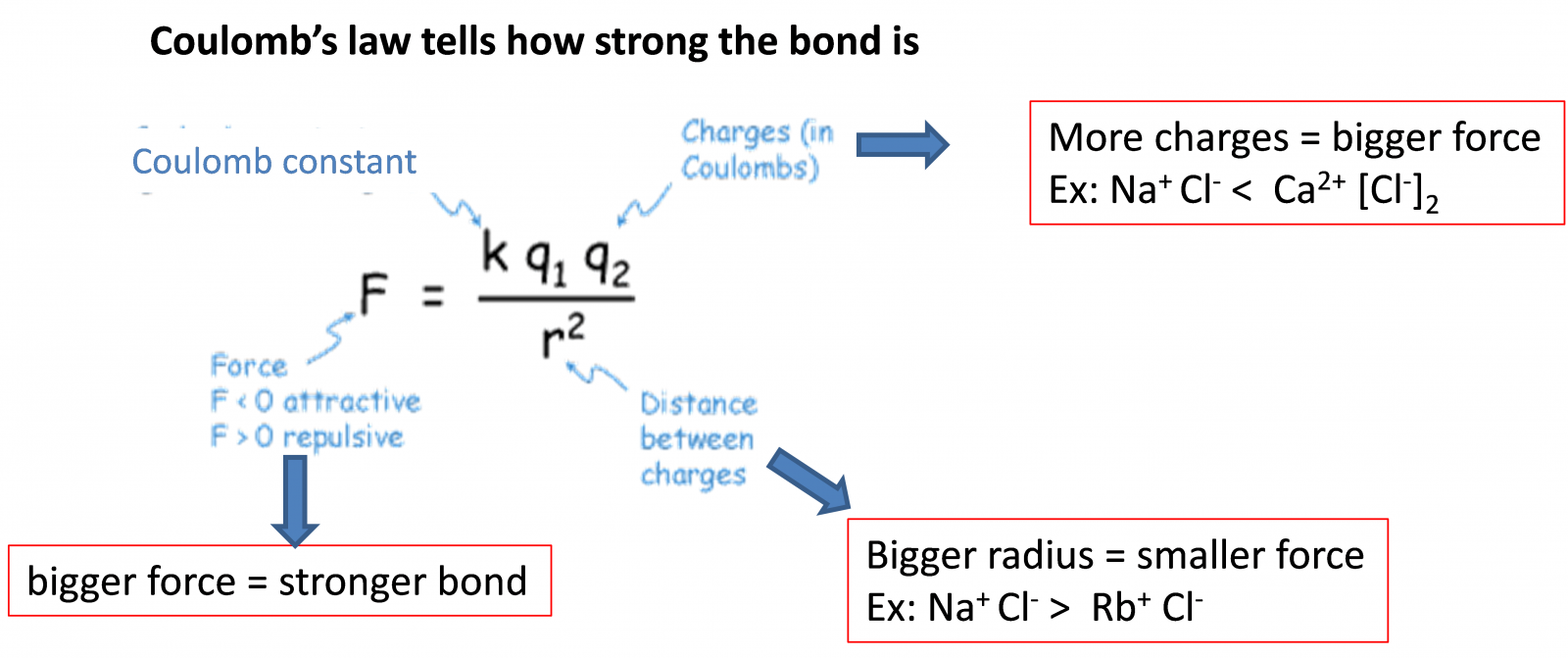 1. More charges Eg. Ca2+ make stronger bond than Na+