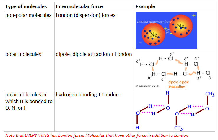 The physical properties of molecular substances result from different types of forces between their molecules.