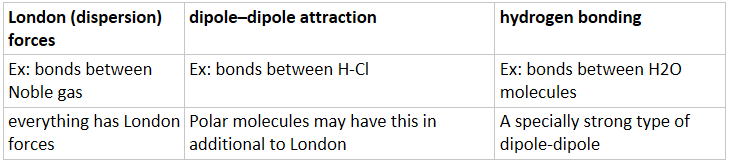 Chemical bonds/forces are divided into two BIG categories, then each category is divided into three smaller types.