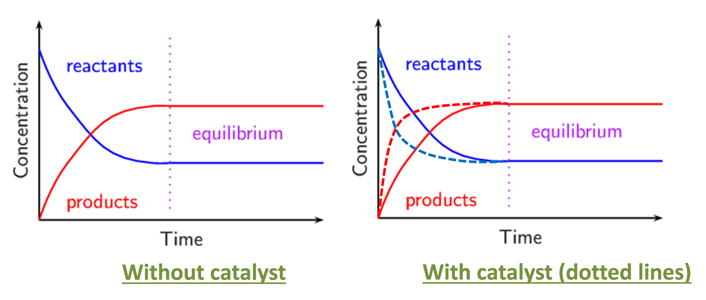 Effect of catalyst on equilibrium no change to equilibrium, only change to the rate of reaction
