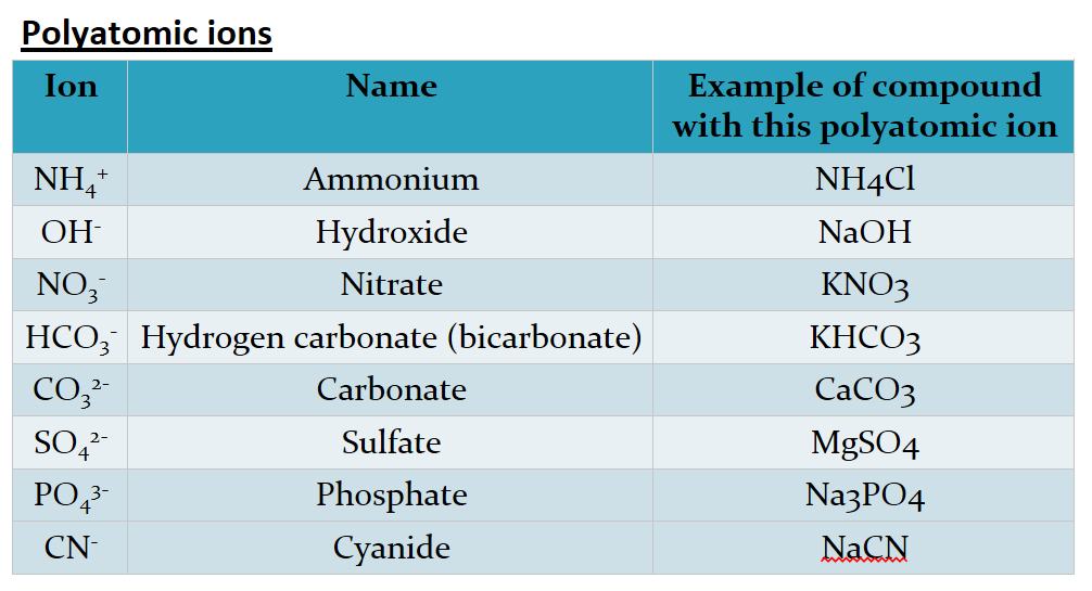 REAL HELPFUL: the following polyatomic ions (the atoms go together) so memorize them and balance the whole group, NOT individual atoms