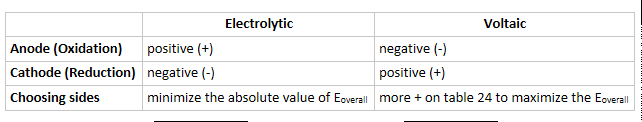What about the charges? Remember that voltaic and electrolytic are opposite of each other